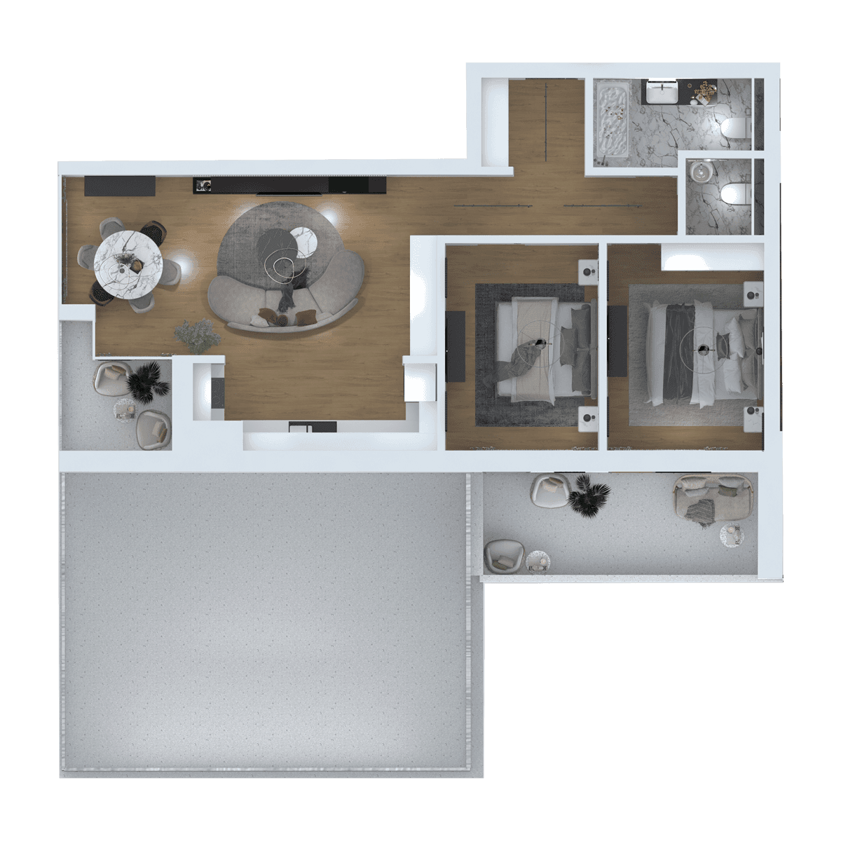 Acest apartament poate fi achiziționat exact în configurația prezentată în randările de concept, respectând întocmai stilul, cromatica și funcționalitatea propuse în imaginile afișate. Designul reflectă o abordare modernă și bine optimizată a spațiului, unde fiecare element este ales pentru a oferi confort, eleganță și un stil de viață armonios. Toate detaliile – de la finisaje, mobilier și până la iluminat – sunt incluse în oferta finală, astfel încât viitorul proprietar să se poată muta fără stres și fără investiții suplimentare. Practic, ceea ce vedeți în aceste randări reprezintă o propunere realistă și complet implementabilă, disponibilă pentru achiziție imediată.